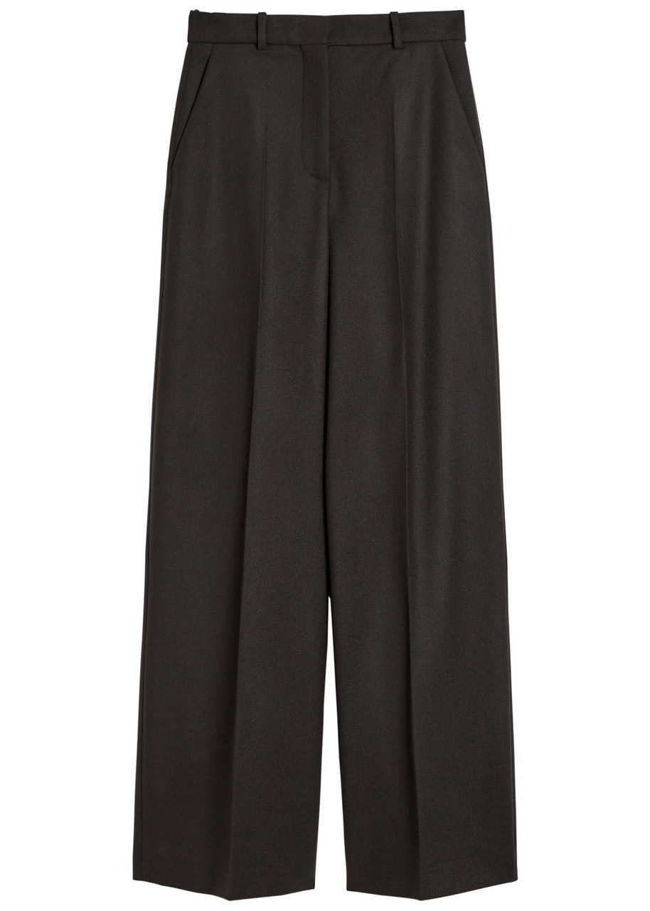 Info & Care Joseph wool-blend trousers Belt loops, side slip pockets, pressed crease through legs, two slit pockets at back Concealed hook, button and zip fastening at front 98% wool, 1% polyamide, 1% elastane Dry clean Size & Fit Inside leg length: 32 inches/ 81.5cm Midweight Wide-leg cut Designed to sit high on the waist Model is 5'9"/ 175cm and wears a size;FR36
