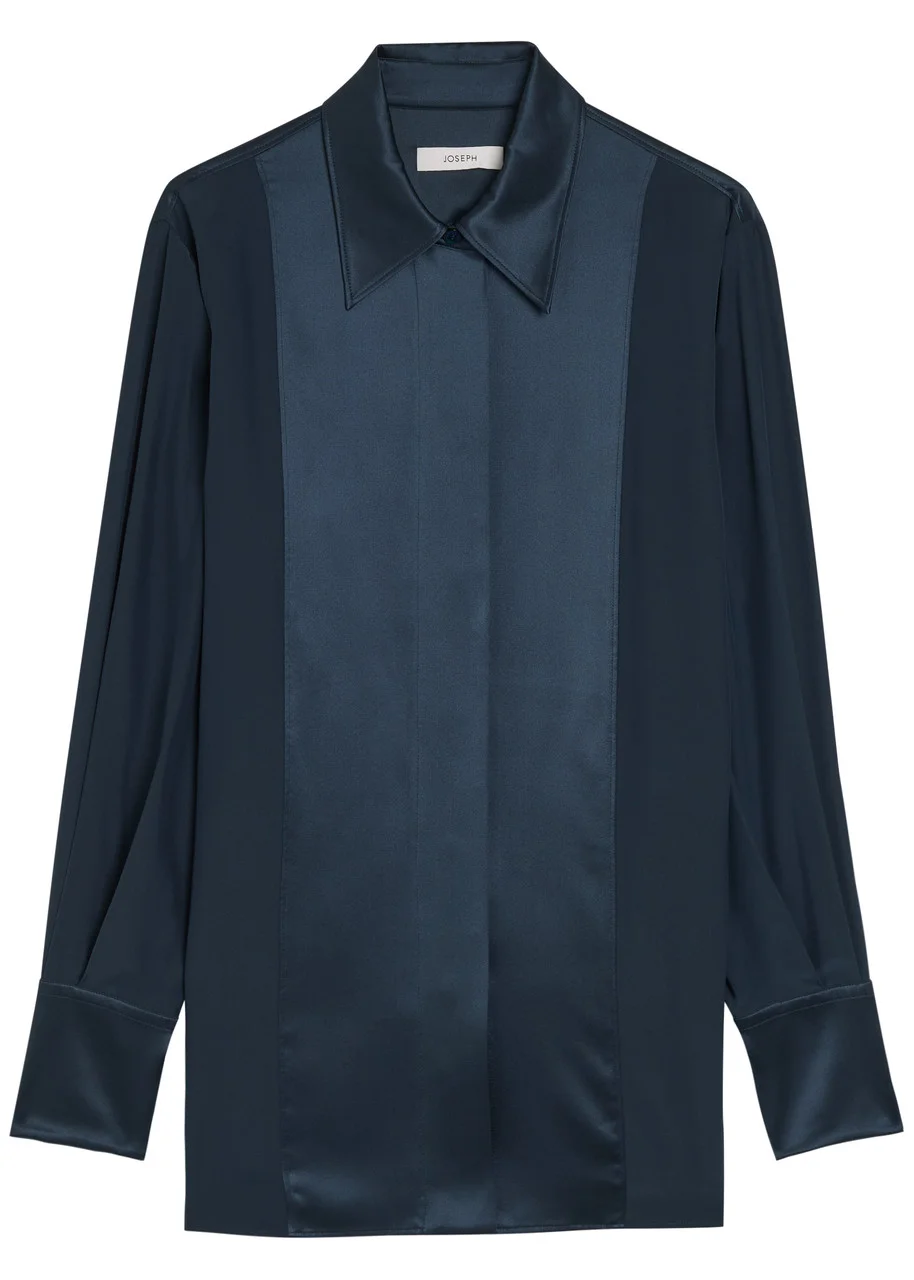 Info & Care Joseph silk blouse Panelled, button-fastening cuffs, wide box pleat at back Partially concealed button fastenings through front 100% silk Hand wash Size & Fit Length shoulder to hem: 28 inches/ 71cm Midweight Loose fit Model is 5'8"/ 173cm and wears a size;FR36