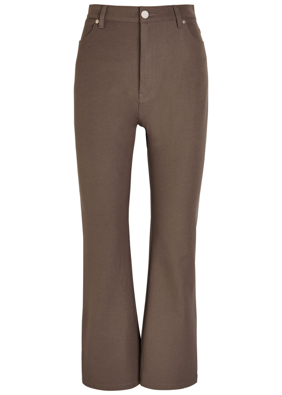 Info & Care Joseph stretch-twill trousers Belt loops, three front patch pockets, two back patch pockets, cropped Partially concealed zip and button fastenings at front 53% viscose, 42% cotton, 5% elastane Dry clean Size & Fit Inside leg length: 25.5 inches/ 65cm Midweight Flared-leg cut, cropped; Model is 5'9"/ 175cm and wears a size FR36
