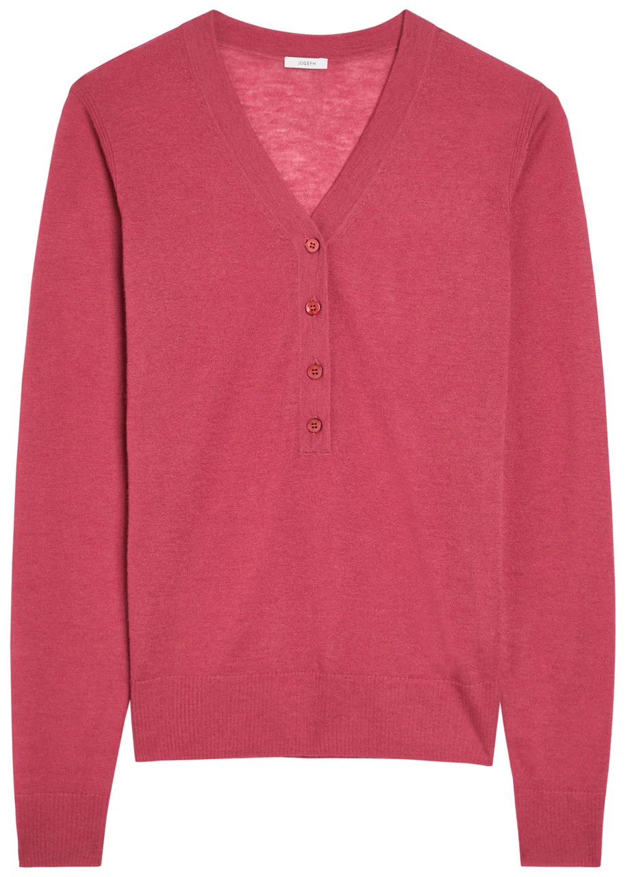 Info & Care Joseph semi-sheer cashmere top Button-fastening V-neck, ribbed trims Slips on 100% cashmere Hand wash Size & Fit Length shoulder to hem: 22 inches/ 56cm Lightweight Relaxed fit Model is 5'8"/ 173cm and wears a size small