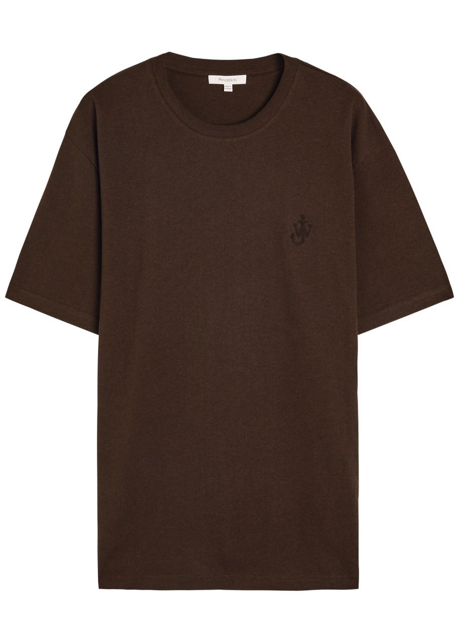 Info & Care JW Anderson cotton T-shirt Ribbed crew-neck, embroidered logo at chest Slips on 100% cotton Machine wash; Size & Fit Length shoulder to hem: 28.5 inches/ 72.5cm Midweight Loose fit Model is 6'2"/ 188cm, chest size 38 inches and wears a size medium