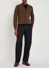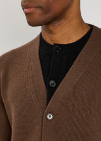 Info & Care JW Anderson wool and cashmere-blend cardigan Layered design, round-neck with V-neck layer, embroidered logo at back neck, ribbed trims Button fastenings through front 90% sheep wool, 10% cashmere Dry clean Size & Fit Length shoulder to hem: 25 inches/ 63.5cm Midweight Regular fit Model is 6'2"/ 188cm, chest size 38 inches and wears a size medium