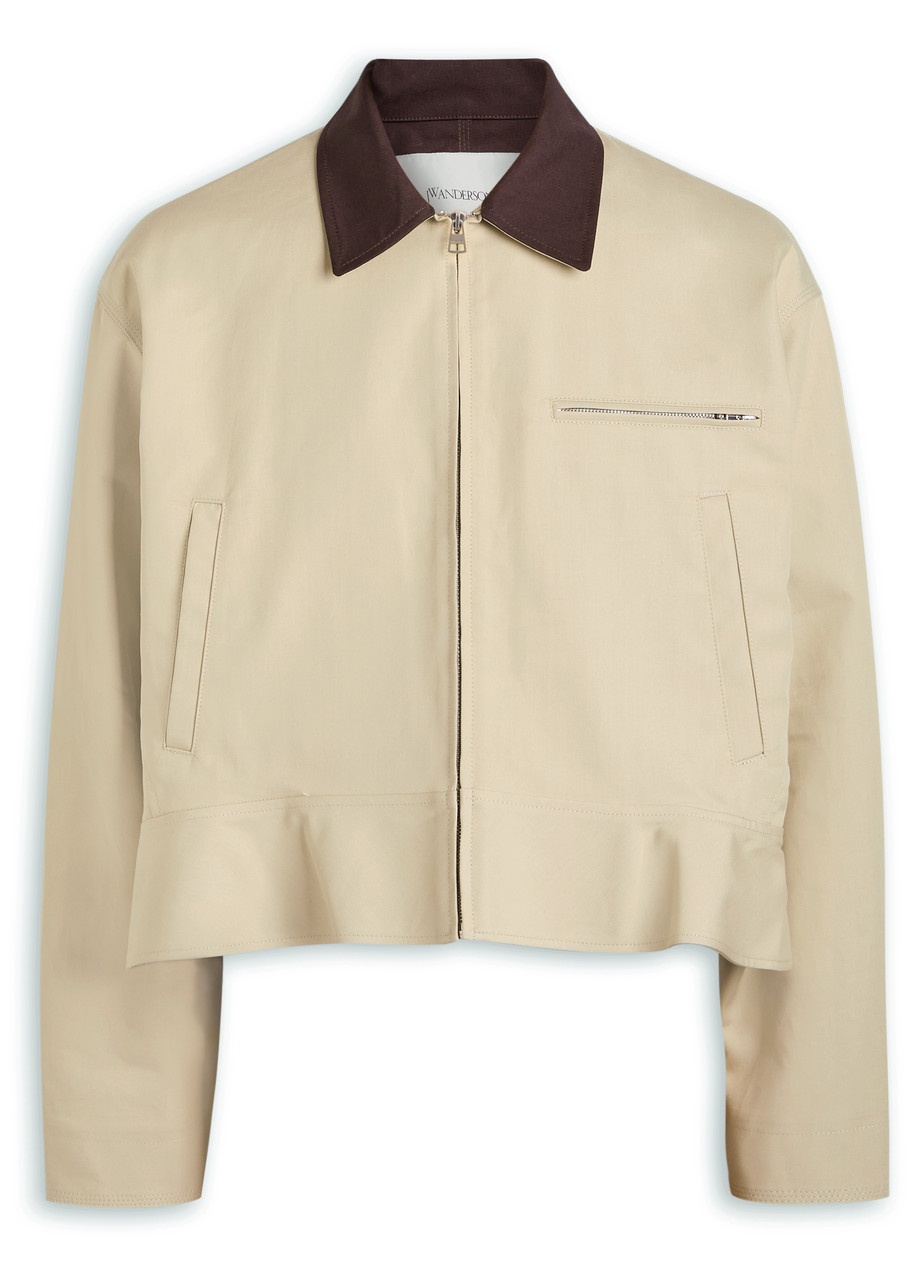 Info & Care JW Anderson cotton jacket Contrasting collar, adjustable press-stud fastening cuffs, zip-fastening chest pocket, two side slip pockets, adjustable press-stud fastening curved hem, designer-engraved hardware, fully lined Zip fastening through front; 100% cotton Dry clean Size & Fit Length shoulder to hem: 22 inches/ 56cm Midweight Relaxed fit, boxy style Model is 6'1"/ 185cm, chest size 38 inches and wears a size medium