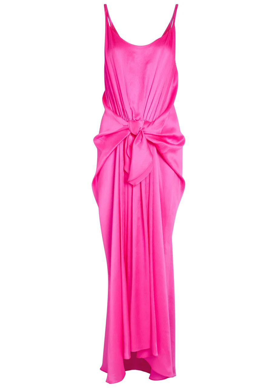 Info & Care JW Anderson silk dress Draped, scoop-neck, twisted shoulder straps, knotted waist, pleated details, longer back hem Slips on 100% silk Dry clean Size & Fit Length shoulder to hem: 52 inches/ 132cm; back: 56 inches/ 142.5cm Midweight loose fit, draped style Model is 5'9"/ 175cm and wears a size;UK8