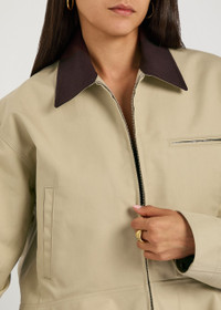 Info & Care JW Anderson cotton jacket Contrasting collar, adjustable press-stud fastening cuffs, zip-fastening chest pocket, two side slip pockets, adjustable press-stud fastening peplum hem, designer-engraved hardware,;fully lined Zip fastening through front; 100% cotton Dry clean Size & Fit Length shoulder to hem: 21.5 inches/ 54.5cm Midweight Relaxed fit, boxy style Model is 5'10"/ 178cm and wears a size;small