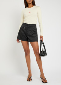Info & Care J.W. Anderson satin shorts Belt loops, zip-fastening pocket, side slip pockets, button-fastening pockets at back, fully lined Partially concealed button and zip fastening at front 75% acetate, 22% polyamide, 3% elastane; lining: 100% cotton Dry clean Size & Fit Length;waist;to hem: 14.5 inches/ 37cm Midweight Slim across the waist Flared towards the hem Model is 5'10"/ 178cm and wears a size;UK8