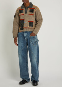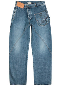 Info & Care JW Anderson denim jeans Twisted design, mid-rise fit, relaxed straight-leg cut, leather designer plaque, belt loops, four pocket, designer embroidery, washed finish Partially concealed button fastenings at front 100% cotton Machine wash cold inside out to avoid colour transfer; Size & Fit Front rise: 12 inches/ 30.5cm Inside leg length: 34 inches/ 86.5cm Midweight Model is 6'1"/ 185cm and wears a size;W32