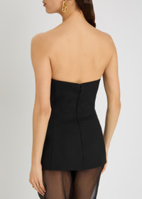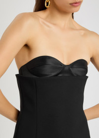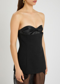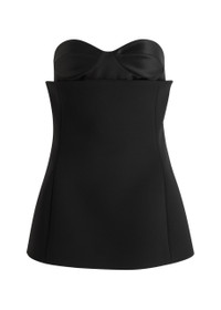 Info & Care Khaite crepe top Strapless, sweetheart neckline, satin layered effect with concealed mesh panel, structured bust, darted, flared hem, fully lined; Concealed zip fastening at back 100% polyester; fabric 2: 68% cotton, 32% viscose; lining 1: 90% polyamide, 10% elastane; lining 2: 100% silk Dry clean Size & Fit Length shoulder to hem: 18 inches/ 45.5cm Midweight Slim across the bust and waist Model is 5'10"/ 175cm and wears a size;US4