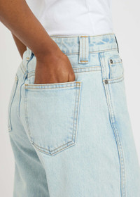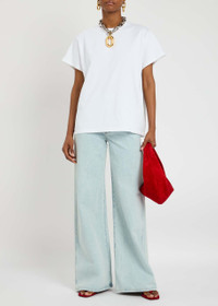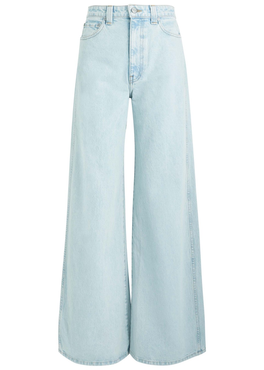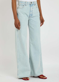 Info & Care Khaite denim jeans High-rise fit, wide-leg cut, belt loops, five pockets Partially concealed button fastenings at front; 98% cotton, 2% polyurethane Hand wash Size & Fit Front rise: 12 inches/ 30.5cm; Inside leg length: 32.5 inches/ 82.5cm; Midweight Model is 5'10"/ 178cm and wears a size W27