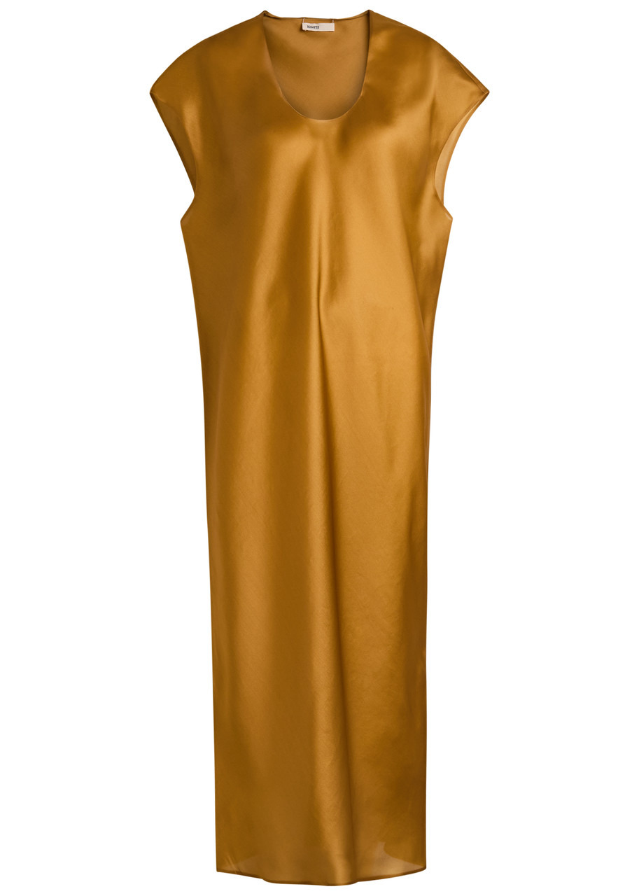 Info & Care Khaite silk dress Low scoop-neck,;dolman sleeves Slips on 100% silk Dry clean Size & Fit Length shoulder to hem: 50 inches/ 127.5cm Midweight Loose fit Model is 5'9"/ 175cm and wears a size small