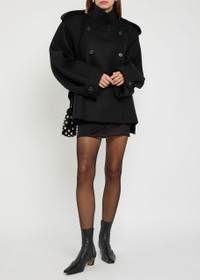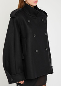 Info & Care KHAITE wool-blend;coat Funnel-neck, padded shoulders, detachable button-fastening epaulettes, button-fastening tab at cuffs, front slip pockets, inverted pleat at back, back panel, fully lined Double-breasted button fastenings through front 75% virgin wool, 25% nylon; lining: 100% cupro Dry clean Size & Fit Length shoulder to hem: 27 inches/ 68.5cm Heavyweight Relaxed fit Model is 5'9"/ 175cm and wears a size small;