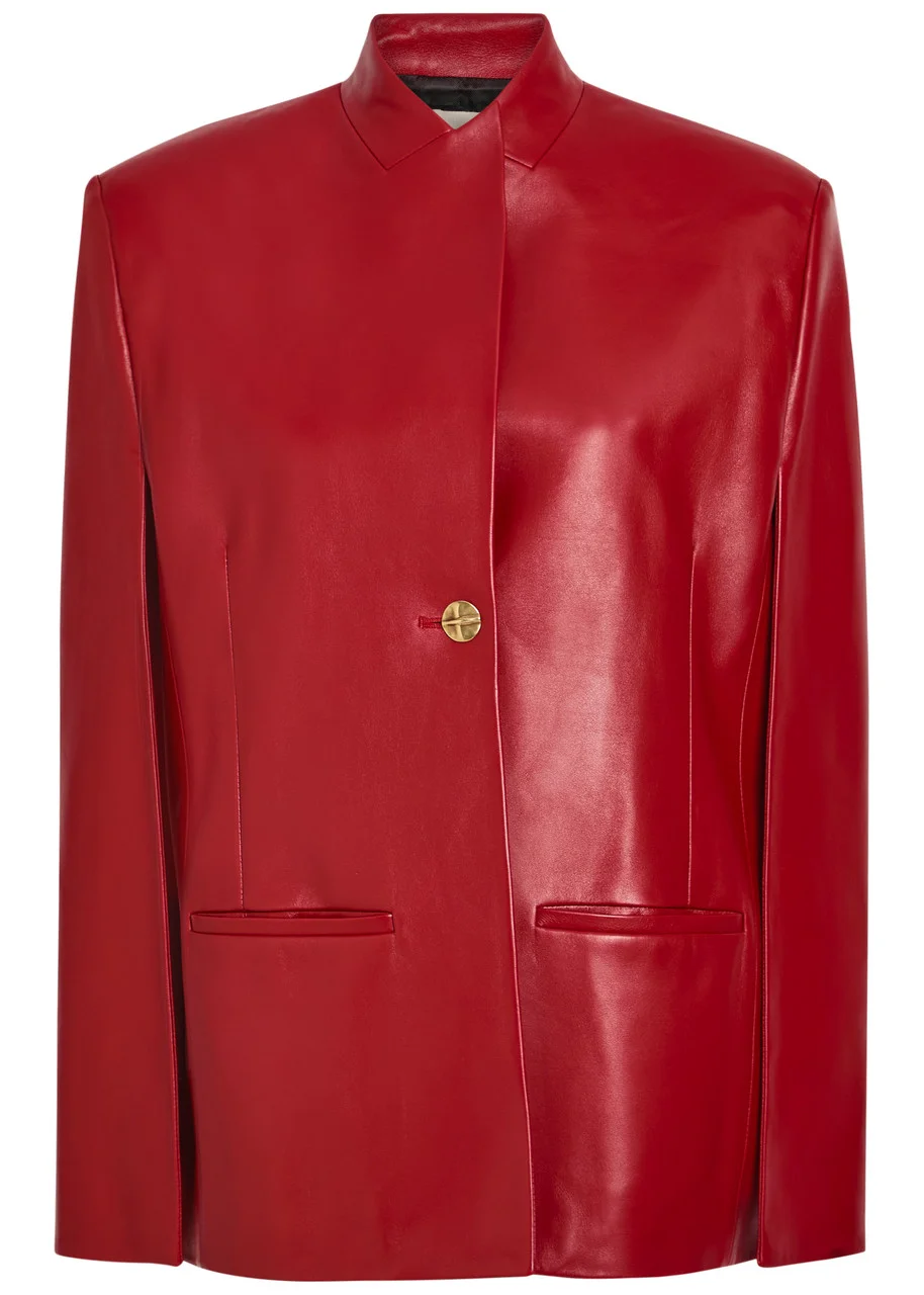 Dolso Cape-Sleeve Plonge Leather Jacket red