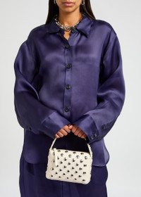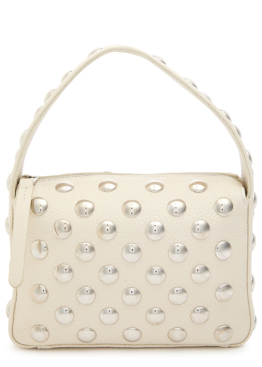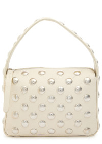 Elena small studded textured-leather shoulder bag Beige