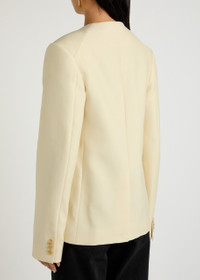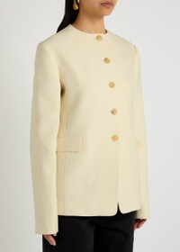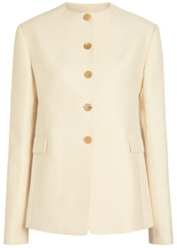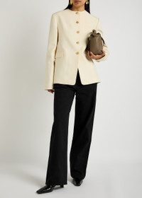 Info & Care Khaite wool-blend jacket Darted round-neck, padded shoulders, button-fastening cuffs, front flap pockets, back vent, fully lined Button-fastenings through front 71% virgin wool, 29% silk; lining: 100% cupro Dry clean Size & Fit Length shoulder to hem: 28 inches/ 71cm Midweight Regular fit Model is 5'10"/ 178cm and wears a size US4