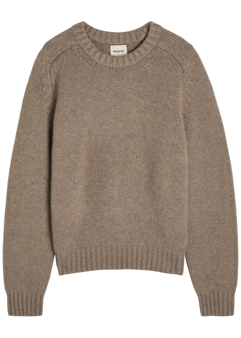 Info & Care Khaite cashmere jumper crew-neck, ribbed trims Slips on; 100% cashmere; Dry clean; Size & Fit Length shoulder to hem: 24 inches/ 61cm Midweight Relaxed fit Model is 5'9"/ 175cm and wears a size small