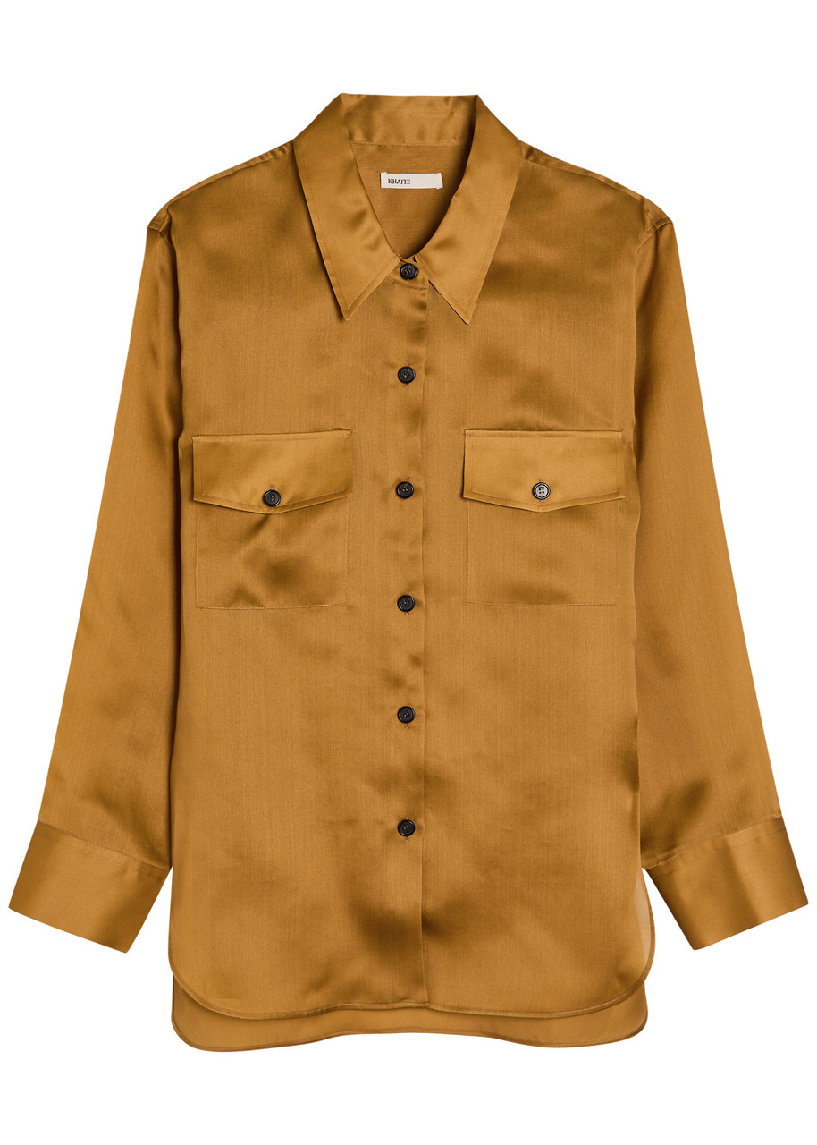 Info & Care Khaite silk-organza shirt Button-fastening cuffs, two button-fastening chest flap pockets, wide box pleat at back, side splits, curved hem Button-fastenings through front 100% silk Dry clean Size & Fit Length shoulder to hem: 29.5 inches/ 75cm Midweight Loose fit Model is 5'10"/ 178cm and wears a size;small