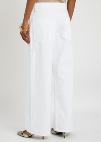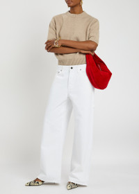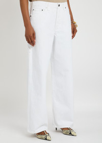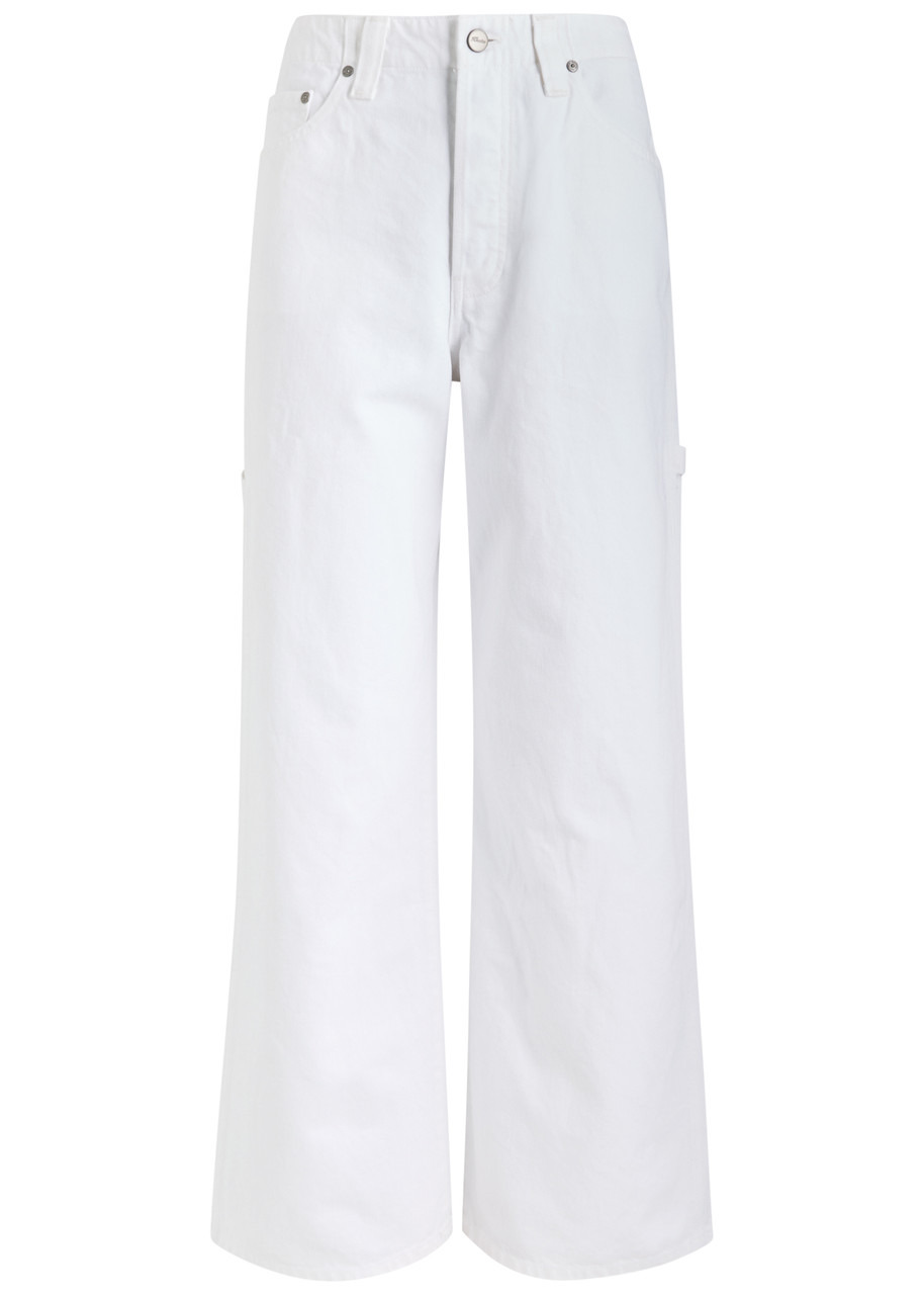 Info & Care Khaite denim jeans Mid-rise fit, wide-leg cut, belt loops, three front slip pockets, tab at side, four back patch pockets Partially concealed button fastenings at front; 100% cotton Hand wash; Size & Fit Front rise: 12 inches/ 30.5cm; Inside leg length: 30 inches/ 76.5cm; Midweight Model is 5'10"/ 178cm and wears a size W27