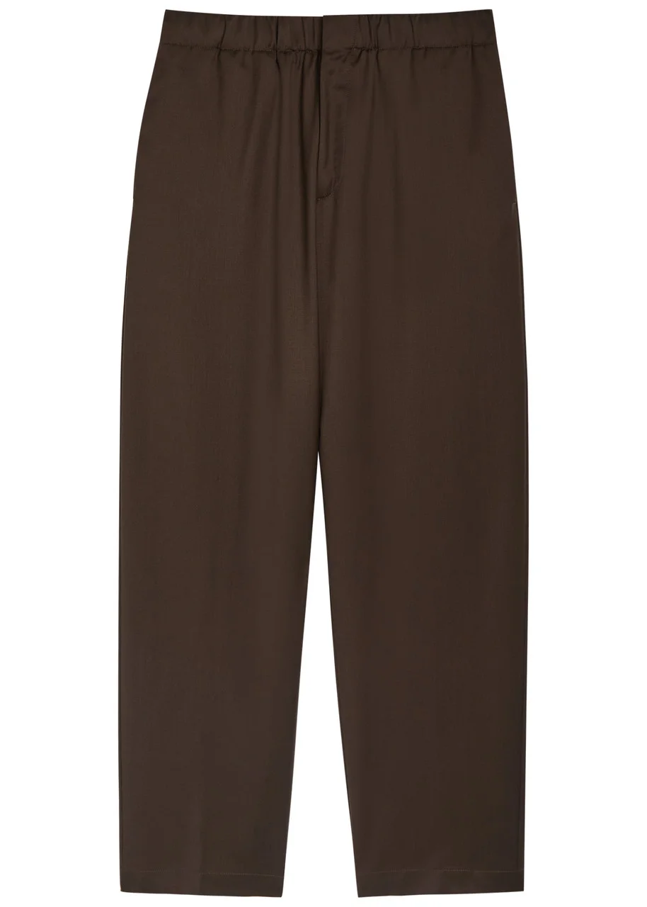 Info & Care Lardini cotton trousers Concealed drawstring at elasticated waist, side slip pockets, button-fastening back flap pockets Concealed hook, button nd zip fastening at front 100% cotton Dry clean Size & Fit Inside leg length: 30 inches/ 76cm Midweight Relaxed fit, tapered-leg cut Model is 6'1"/ 185cm and wears a size;IT48