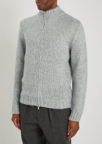 Info & Care Lardini wool-blend cardigan High-neck, ribbed trims Two-way zip-fastening through front 62% virgin wool, 16% cashmere, 16% mohair, 7% silk Dry clean Size & Fit Length;shoulder;to hem:;27 inches/ 68.5cm Midweight Regular fit Model is 6'2"/ 188cm, chest size 38 inches and wears a size;IT48