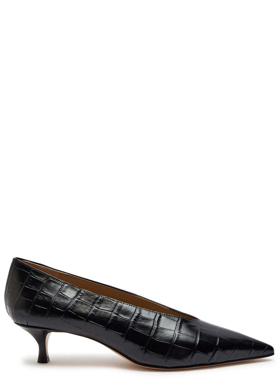 Info & Care Le Monde Beryl leather pumps; Heel measures approximately 1.5 inches/ 40mm Debossed crocodile-effect finish, low-cut vamp,;pointed toe Slip-on Size & Fit Narrow across the toe Only available in full sizes, go up to the nearest whole size if you take a half size