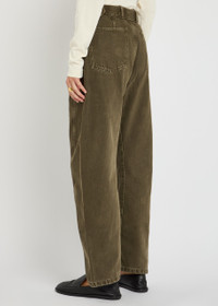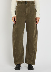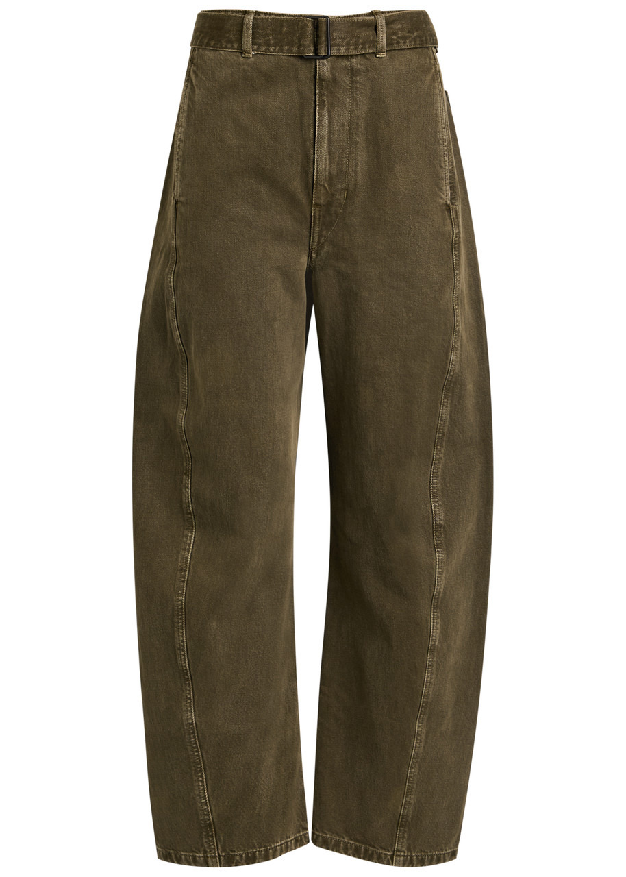 Info & Care Lemaire denim jeans High-rise fit, barrel-leg cut, belt loops, detachable belt, four pockets, twisted seams, faded finish Concealed hook, button and zip fastening at front 100% cotton Machine wash inside out to avoid colour transfer Size & Fit Front rise: 13 inches/ 33cm Inside leg length: 28 inches/ 71.5cm Midweight Model is 5'9"/ 175cm and wears a size;small