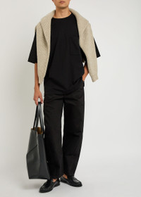 Info & Care Lemaire cotton T-shirt Ribbed crew-neck, chest patch pocket, side splits at hem Slips on 100% cotton Machine wash Size & Fit Length shoulder to hem: 30 inches/ 76cm Heavyweight Loose, boxy fit Model is 6'1"/ 185cm, chest size 38.5 inches and wears a size medium