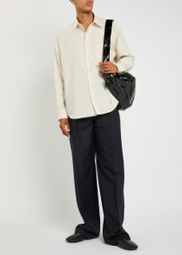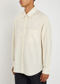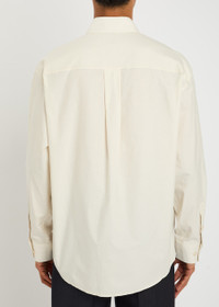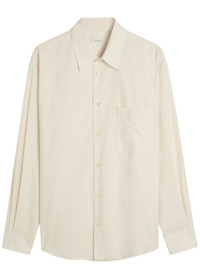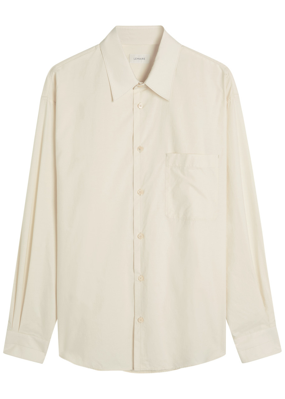 Info & Care Lemaire;cotton and silk-blend shirt; Dropped shoulders, button-fastening cuffs, chest patch pocket, box pleat at back, curved hem Button fastenings through front; 80% cotton, 20% silk Dry clean Size & Fit Length shoulder to hem: 28.5 inches/ 72.5cm Midweight Relaxed fit Model is 6'1"/ 185cm, chest size 36 inches and wears a size;IT48