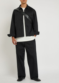 Info & Care Lemaire cotton-poplin trousers Tie fastening at partially elasticated waist, button-fastening fly, side slip pockets, button-fastening pocket Pull on 100% cotton Machine wash Coordinating item available Size & Fit Inside leg length: 28.5 inches/ 72.5cm Midweight Relaxed, straight-leg;cut Model is 6'1"/ 185cm and wears a size;IT48