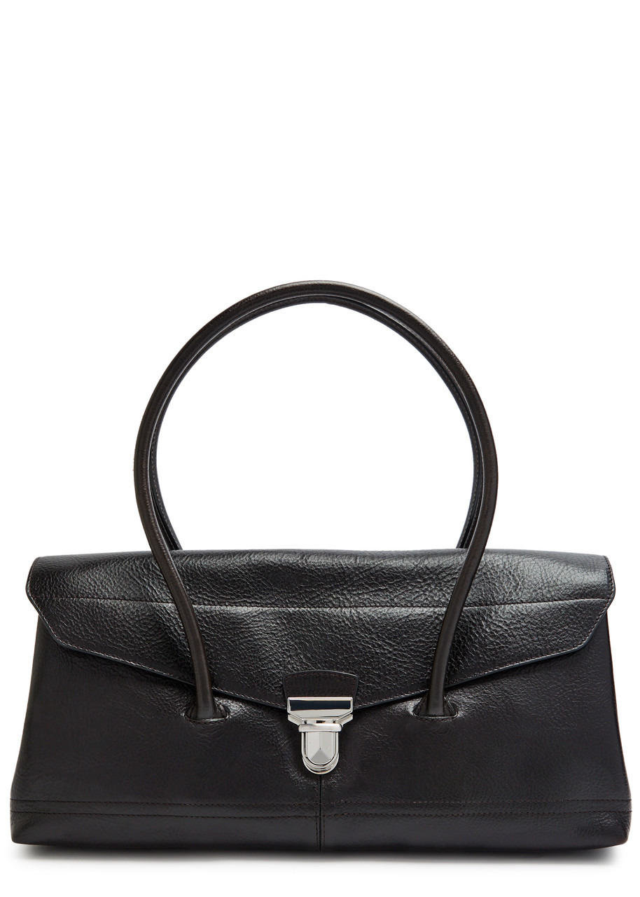 Info & Care Lemaire grained leather shoulder bag Shoulder straps, gathered sides, debossed logo at back, zip-fastening back pocket, designer-engraved hardware, two internal compartments, internal zip-fastening pocket, fully lined Push-clasp fastening at flap front Size & Fit Width: 16 inches/ 41cm Height: 7 inches/ 18cm Depth: 5.5 inches/ 14cm Shoulder strap drop: 8 inches/;20.5cm
