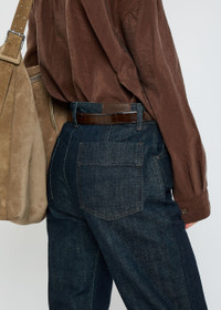 Info & Care Lemaire denim jeans High-rise fit, straight-leg cut, belt loops, five pockets, twisted seams through legs, designer plaque at back, slightly faded finish Partially concealed button and zip fastening at front 100% cotton; Machine wash cold inside out to avoid colour transfer; Size & Fit Front rise: 12 inches/ 30.5cm Inside leg length: 32 inches/ 81.5cm Midweight Model is 5'9"/ 178cm and wears a size;FR36