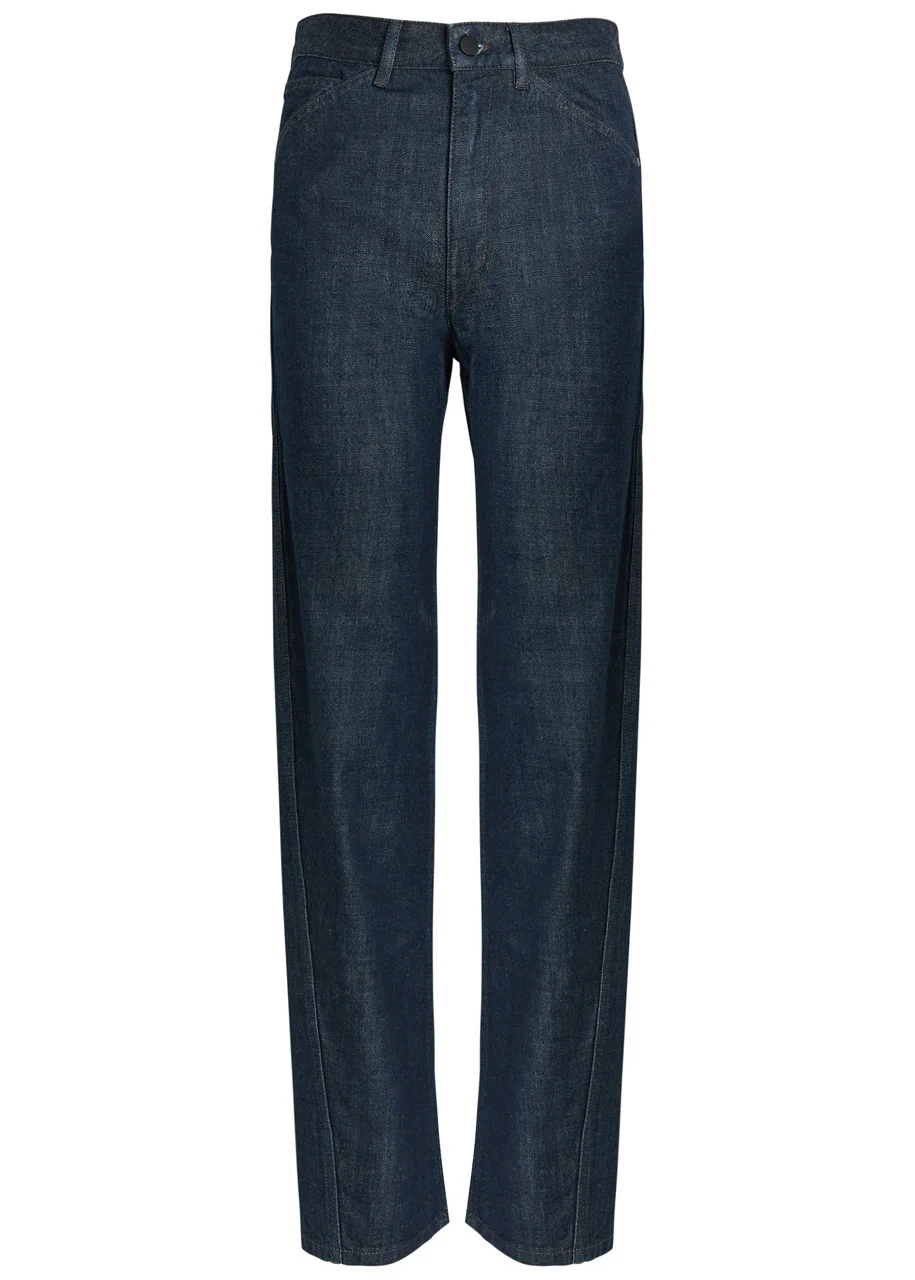 Info & Care Lemaire denim jeans High-rise fit, straight-leg cut, belt loops, five pockets, twisted seams through legs, designer plaque at back Partially concealed button and zip fastening at front 100% cotton; Dry clean; Size & Fit Front rise: 11 inches/ 28cm Inside leg length: 33 inches/ 84cm Midweight Model is 5'9"/ 178cm and wears a size FR36