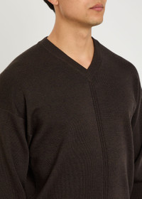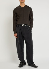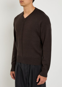 Info & Care Lemaire wool-blend jumper V-neck, ribbed trims Slips on 50% wool, 50% acrylic; Hand wash Size & Fit Length shoulder to hem: 25 inches/ 63.5cm Midweight Relaxed fit Model is 6'1"/ 185cm, chest size 38.5 inches and wears a size medium