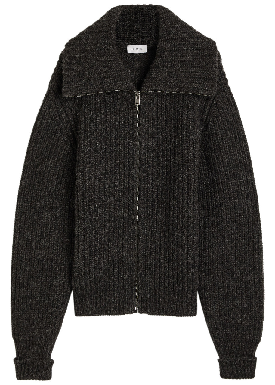 Info & Care Lemaire alpaca-blend cardigan Ribbed, high-neck, turn-up cuffs, brushed finish Zip fastening through front 50% alpaca, 50% yack Hand wash Size & Fit Length shoulder to hem: 27 inches/ 68.5cm Midweight Relaxed fit Model is 6'1"/ 185cm, chest size 38.5 inches and wears a size medium