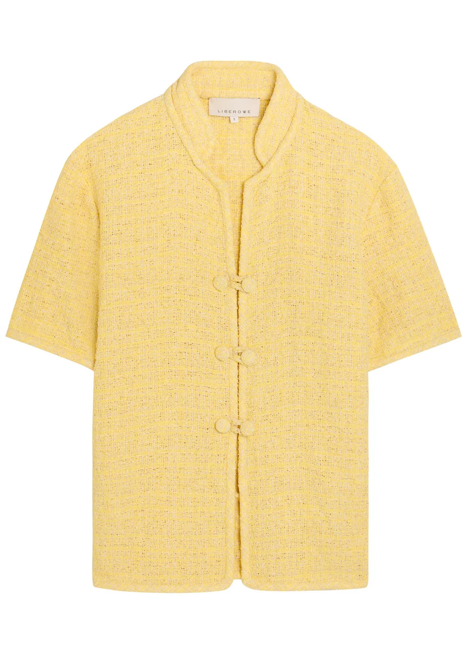 Info & Care Liberowe tweed shirt Stand collar Button fastenings through front 68% polyester, 18% cotton, 7% acrylic, 7% nylon Dry clean Coordinating items available Size & Fit Length shoulder to hem: 25 inches/ 63.5cm Midweight Relaxed fit Model is 5'10"/ 178cm and wears a size small