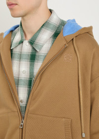Info & Care Loewe cotton sweatshirt Drawstring hood, dropped shoulders, embroidered anagram at chest, side slip pockets, ribbed trims Zip fastening through front 100% cotton Machine wash Size & Fit Length shoulder to hem: 26 inches/ 66cm Midweight Relaxed boxy fit Model is 6'1"/ 185cm, chest size 38 inches and wears a size medium