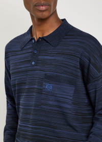 Info & Care Loewe wool;polo Striped, button-fastening neck, dropped shoulders, embroidered logo at chest patch pocket, ribbed trims Slips on 100% wool Dry clean Size & Fit Length shoulder to hem: 27 inches/ 68.5cm Midweight Regular fit Model is 6'1"/ 185cm, chest size 38.5 inches and wears a size medium