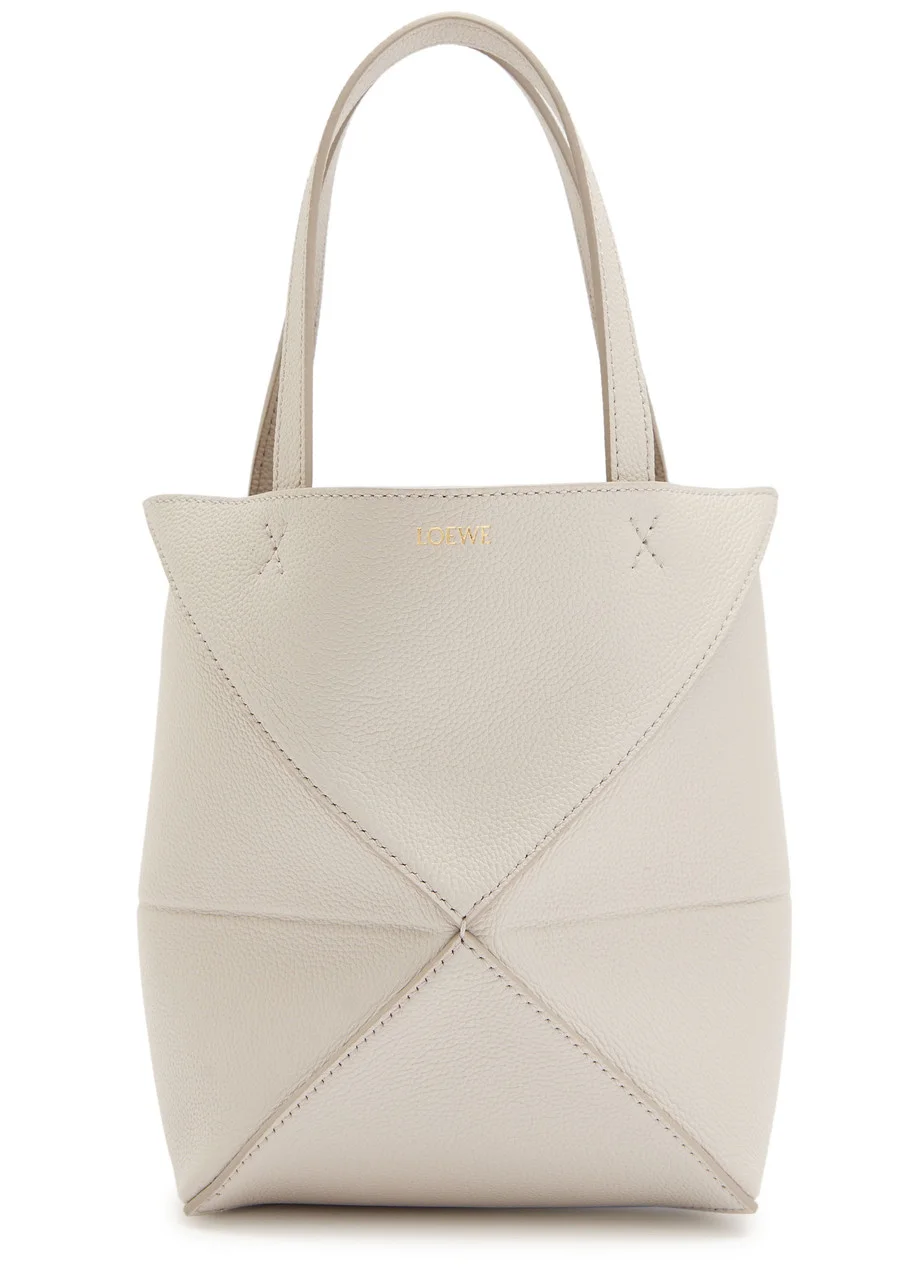 Info & Care Loewe grained leather tote bag Two;top handles, detachable shoulder strap, panelled, designer stamp, suede lining Open top Size & Fit Width: 6 inches/ 15cm Height: 8 inches/ 20.5cm Depth: 3.5 inches/ 9cm Top handle drop: 6 inches/ 15cm Shoulder strap drop: 19.5 inches/ 49.5cm