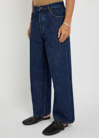 Info & Care Loewe denim jeans Mid-rise fit, straight-leg cut, belt loops, five pockets, designer plaque at back, faded finish Partially concealed button fastenings at front 100% cotton Machine wash cold inside out to avoid colour transfer; Size & Fit Front rise: 13 inches/ 33cm Inside leg length: 30 inches/ 76.5cm Midweight Model is 6'1"/ 185cm and wears a size;IT48