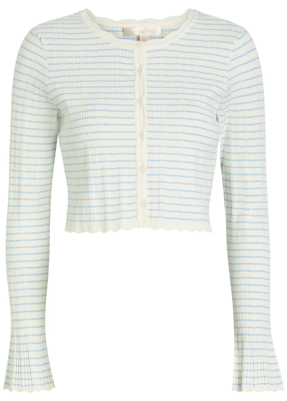 Loveshackfancy Media Striped Stretch-knit Cropped Cardigan