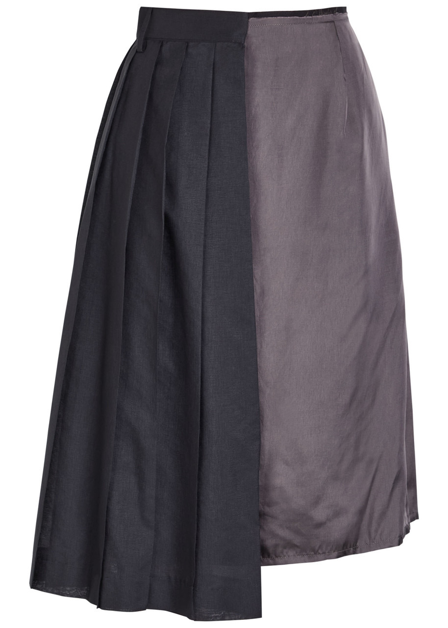 Info & Care Maison Margiela satin skirt Pleated chiffon panel, side slip pockets, side splits, asymmetric hem Concealed button fastening at back Fabric 1: 100% viscose; fabric 2: 100% polyester Dry clean Size & Fit Length waist to hem: 1: 25 inches/ 63.5cm; 2: 27 inches/ 68.5cm Midweight Loose fit, A-line cut Model is 5'9"/ 175cm and wears a size small;