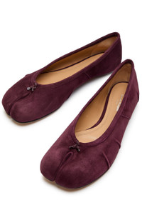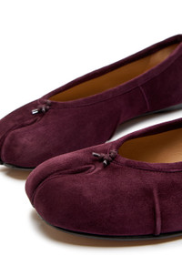 Info & Care Maison Margiela suede ballet flats Split at square toe, stacked wooden sole Slip-on Size & Fit Only available in full sizes, go up to the nearest whole size if you take a half size