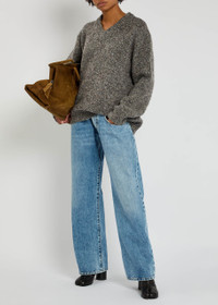 Info & Care Maison Margiela wool jumper V-neck, ribbed trims Slips on 100% virgin wool Dry clean Size & Fit Length shoulder to hem: 27 inches/ 71cm Midweight Relaxed;fit Model is 5'9"/ 175cm and wears a size small