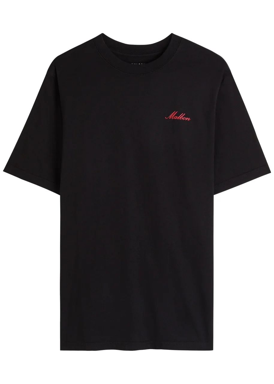 Info & Care Malbon cotton T-shirt Ribbed crew-neck, logo print at chest and back, designer tag at hem Slips on 100% cotton Hand wash Size & Fit Length shoulder to hem: 27 inches/ 68.5cm Midweight Relaxed fit Model is 6'1"/ 185cm, chest size 38.5 inches and wears a size medium