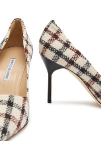 Manolo Blahnik BB 90 Checked-tweed Leather Pumps