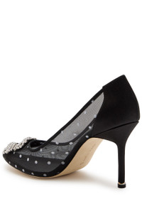 Info & Care Handmade; Manolo Blahnik ;mesh;pumps; Heel measures approximately 3.5 inches/ 90mm; Polka-dot design, crystal-embellished pointed toe; Slip-on; Come with a dust bag; Size & Fit Narrow across the toe;