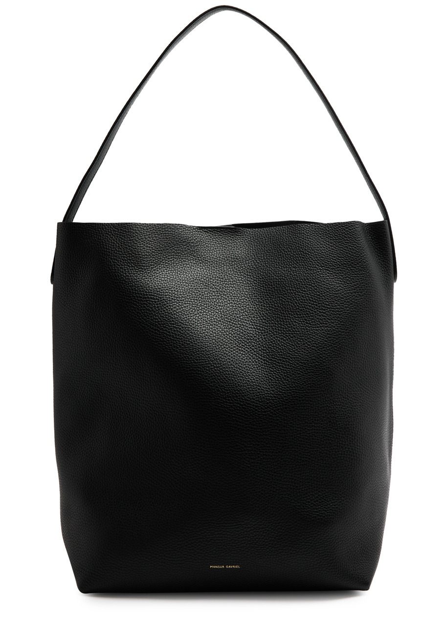 Info & Care Mansur Gavriel grained leather tote Shoulder strap, metallic designer stamp, internal slip pocket, fully lined Concealed magnetic fastening at open top Size & Fit Width: 12 inches/ 30.5cm Height: 15 inches/ 38cm Depth: 8 inches/ 20cm Shoulder strap drop: 10.5 inches/ 27cm