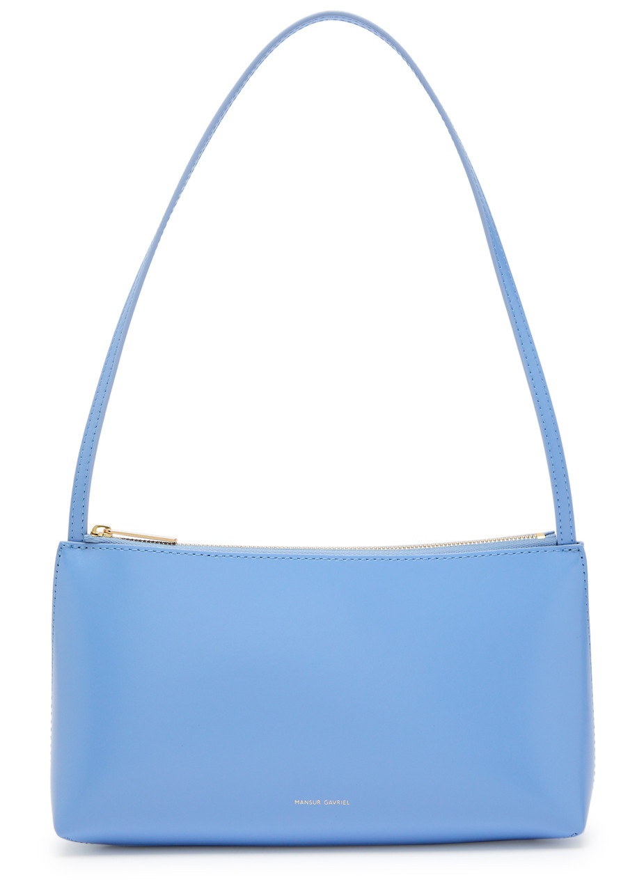 Info & Care Hand-finished; Mansur Gavriel smoothed leather shoulder bag; Shoulder strap, designer stamp, designer-engraved hardware, fully lined Zip fastening across top; Size & Fit Width: 9.5 inches/ 24cm Height: 5 inches/ 13cm Depth: 2 inches/ 5cm Shoulder strap drop: 10 inches/ 25.5cm
