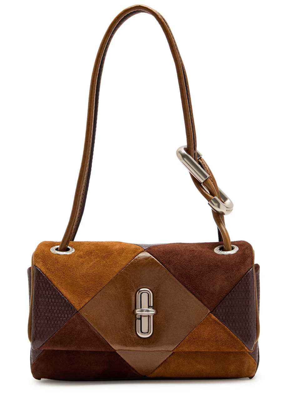 Info & Care Marc Jacobs leather and suede shoulder bag Two shoulder straps with metal trim, patchwork design, logo plaque, designer stamp at back, designer-engraved hardware, textured details, internal zip-fastening pocket, fully lined Turn-lock fastening at flap front Size & Fit Width: 8 inches/ 20.5cm Height: 4 inches/ 10cm Depth: 4 inches/ 10cm Shoulder strap drop: 9 inches/ 23cm