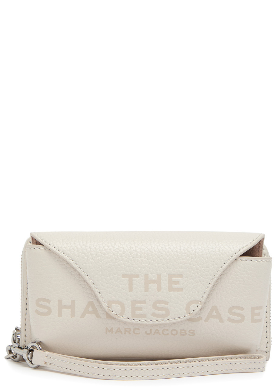 Info & Care Marc Jacobs grained leather purse and sunglasses case Detachable wristlet strap, designer-stamped front, four card slots at back, designer plaque at back, designer engraved, two compartments, internal slip pocket, fully lined Concealed magnetic fastening at flap front; zip fastening across purse top Size & Fit Dimensions: 16cm x 8cm x 6cm