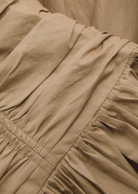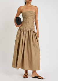 Strapless Ruched Cotton Drop-Waist Maxi Dress tan